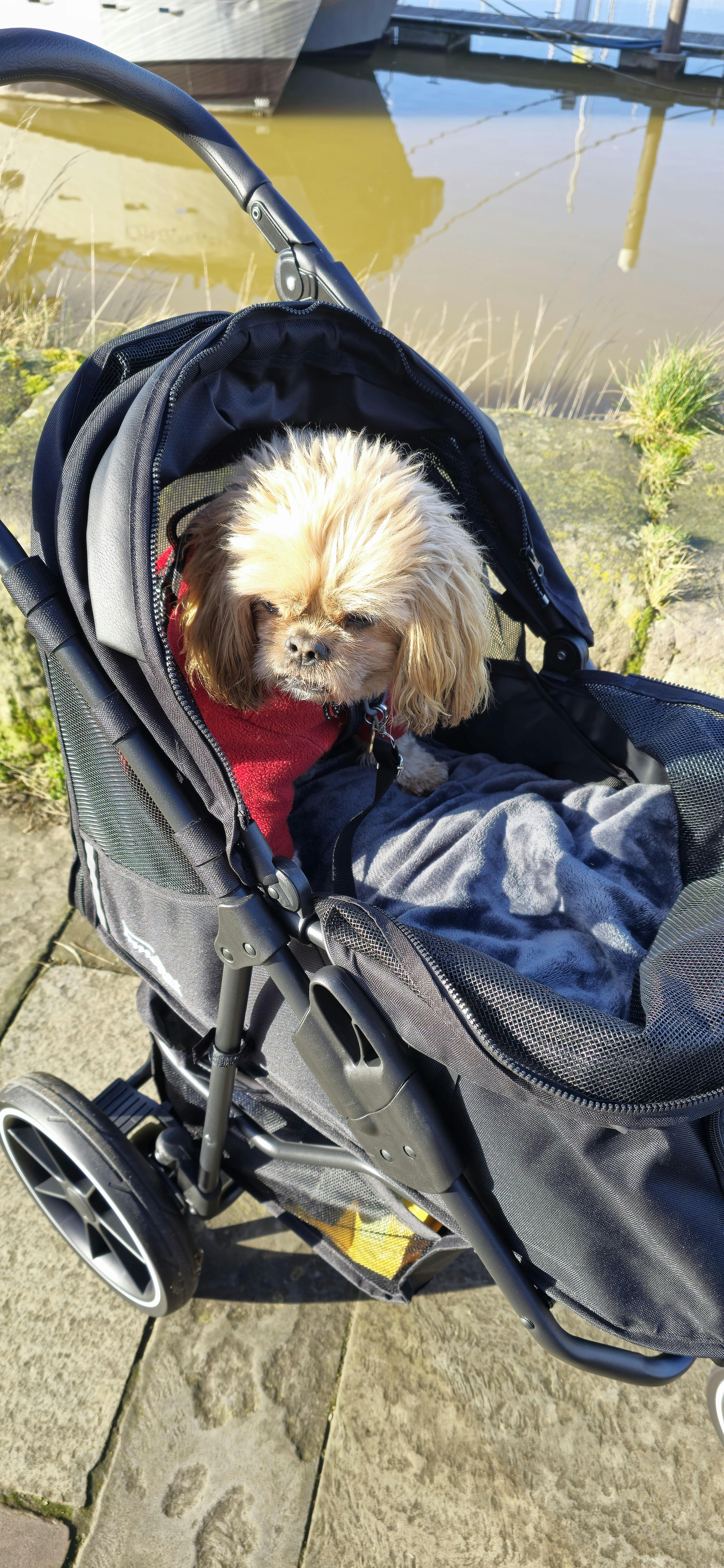 I never would have thought I’d have to push my little doggy around in a stroller but having recently been diagnosed with CKD, we were left with no choice. I chose the Palster Explorer for the sporty vibe and I was delighted at how quickly my little pal took to it and settled, enjoying each trip we went on. It has given her a way to get out and explore without struggling or getting too tired. She loved the walks to the beach and sitting at the table in the beer garden of the pub lapping up the sunshine. Perfect for our little old lady to get her out and about.