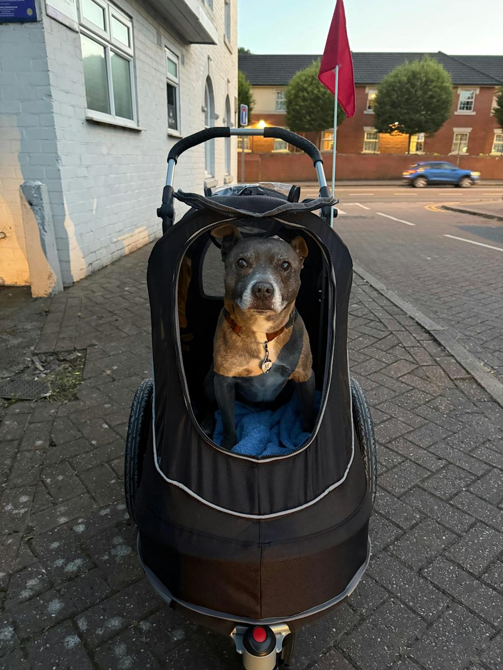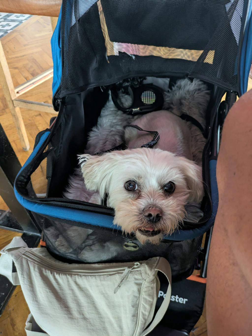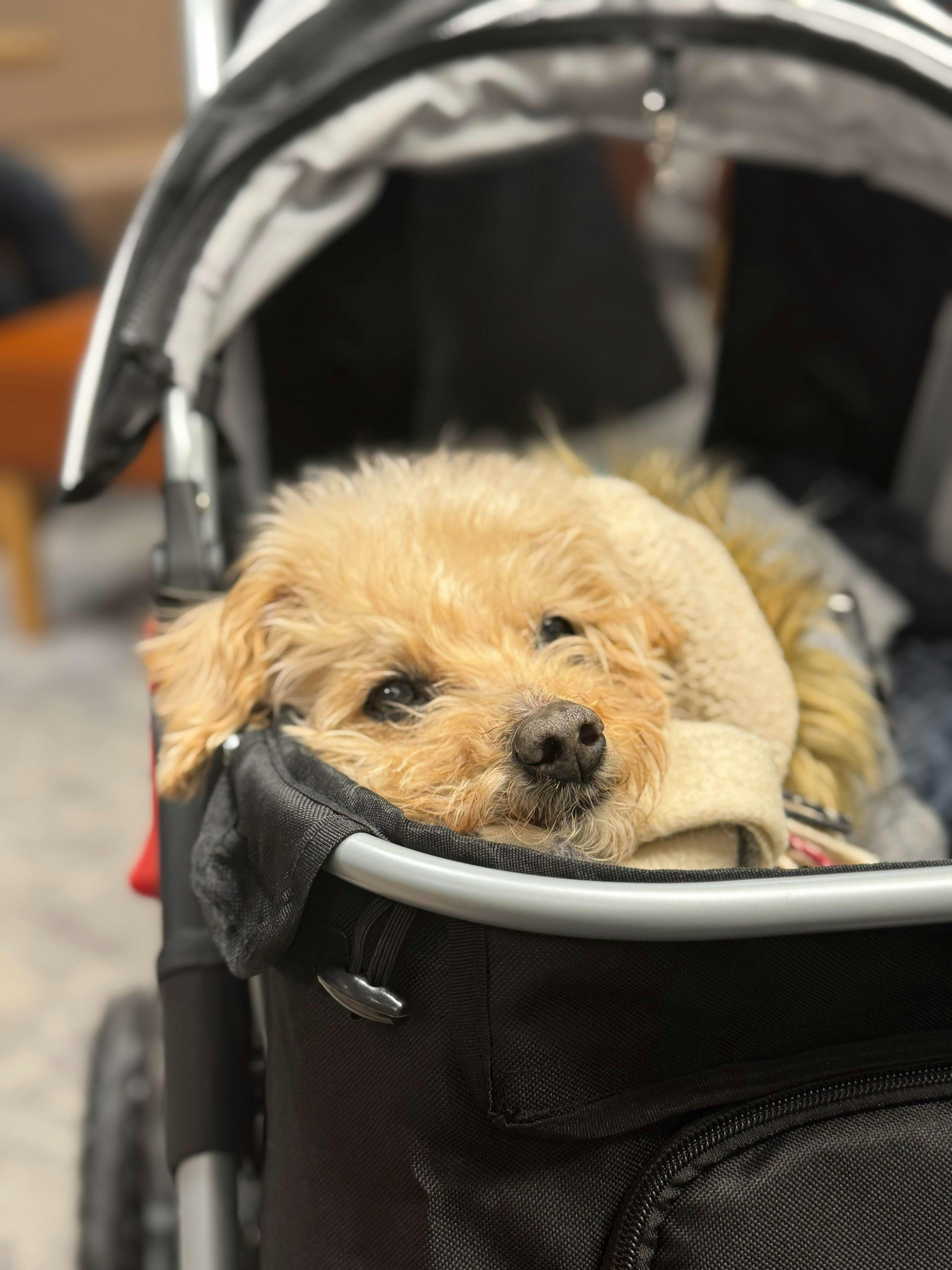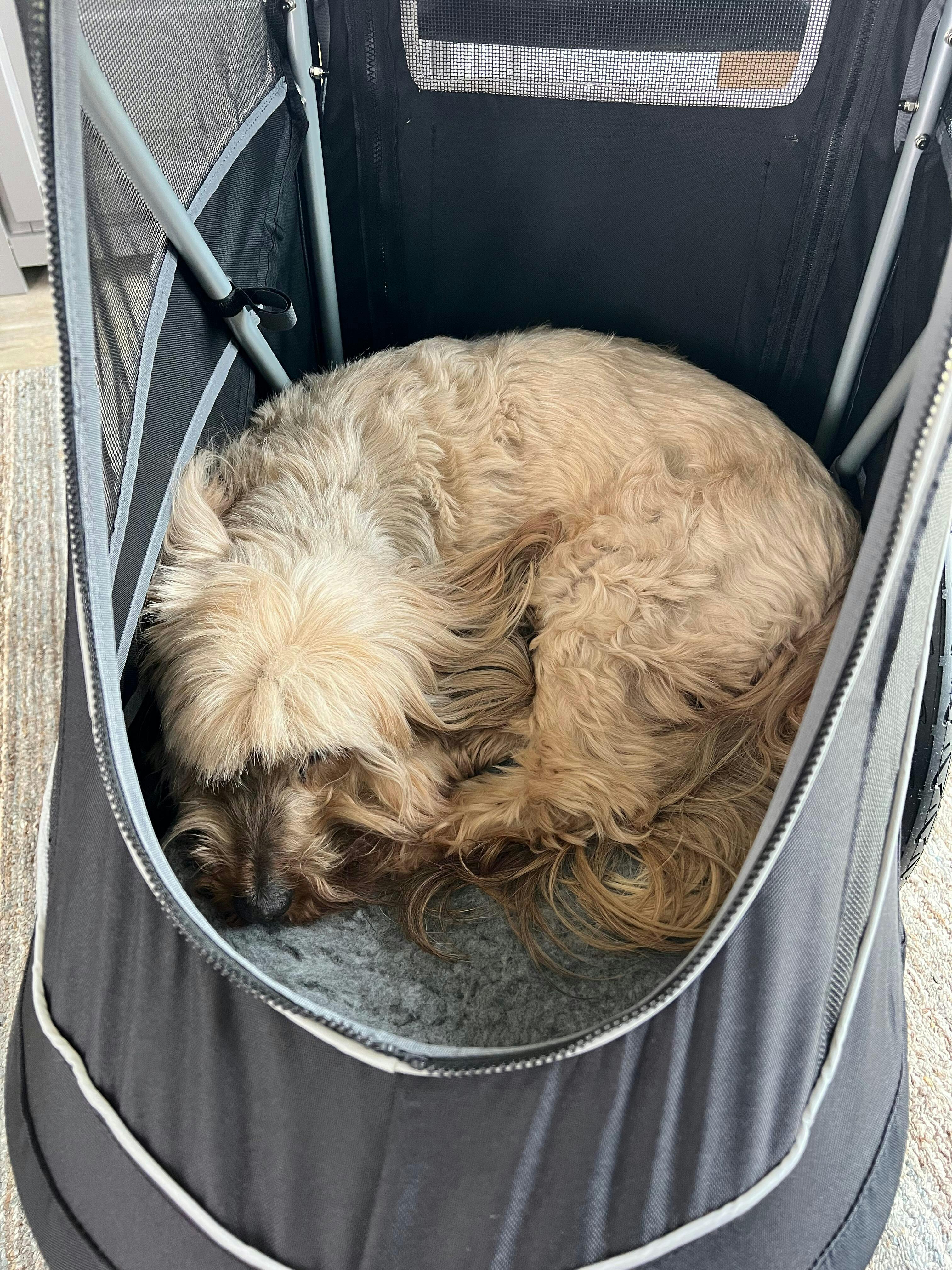 Our sweet girl has been blind for the past 5 years and now has arthritis. She is so determined, but we’ve found she can’t manage walks like she used to. We also have a 3 year old dog and it’s been really difficult to keep everyone happy. Having the stroller means Hetty can walk as far as she can, and be pushed when she’s had enough. It’s very easy to push with one hand when empty and lead her. I can see how much she is enjoying the smells and being outside when she is being pushed. I feel like we’ve got our girl back! She is a 13 kg Cairn Terrier and has plenty of room to stand or sit in the stroller. I think she could lie down, but it’s been too exciting so far! You can see more on Instagram @hettyandalbie